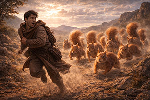 3. Run away if nine squirrels approach from the east.