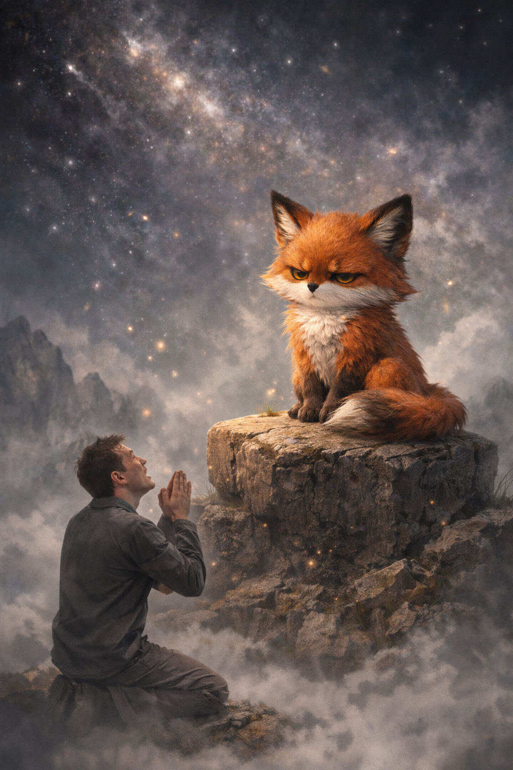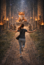 She takes the form of a very small, moody fox.